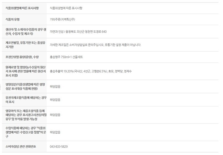 - 상품 하자, 오배송의 경우 자연과 인삼(043-833-5829) 전화주시면 교환∙반품이 가능합니다. (교환/반품비 무료)